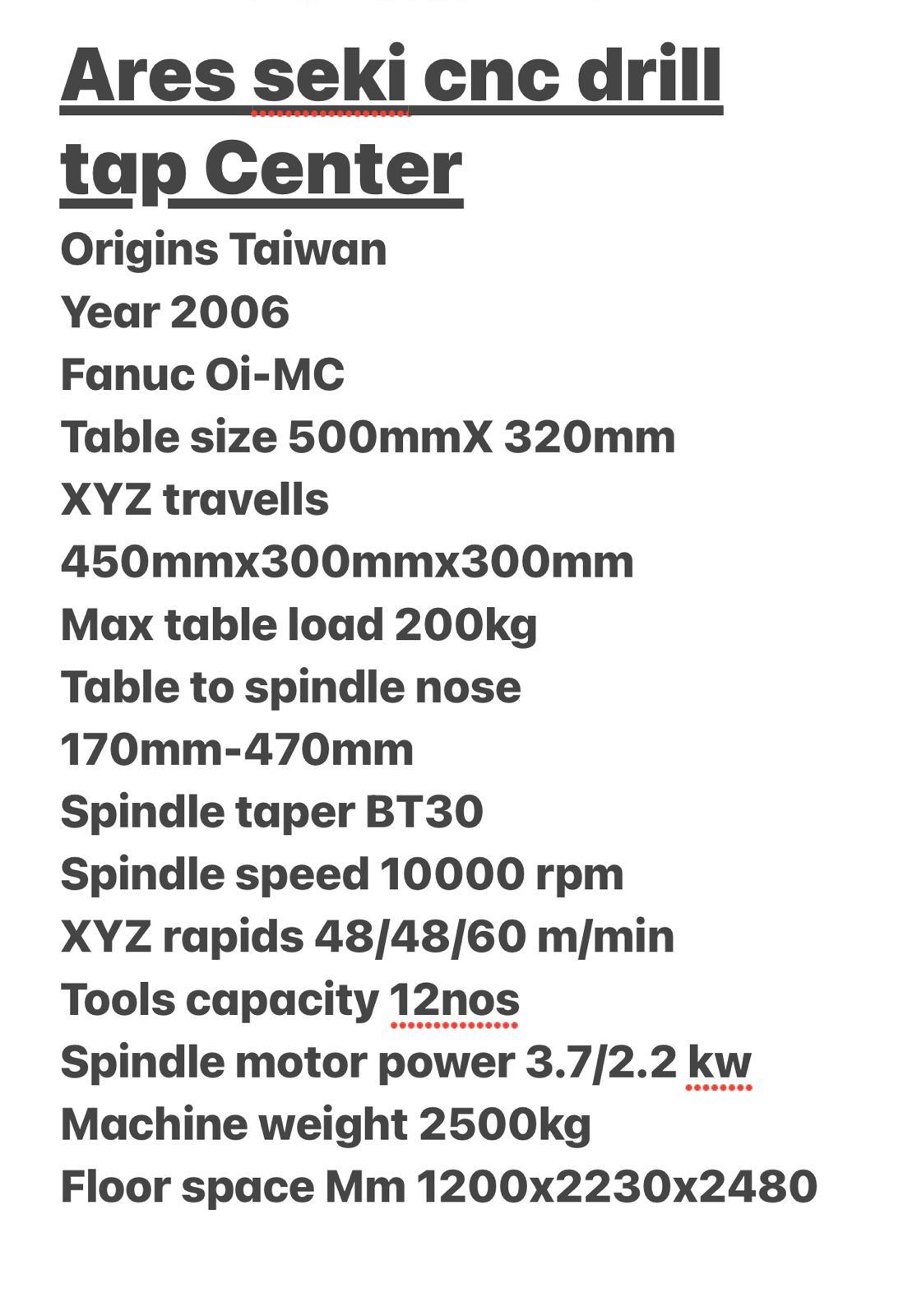 Machine Specifications